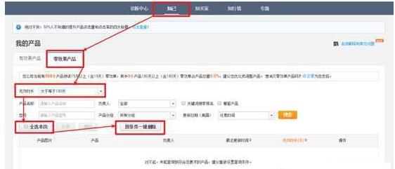 優(yōu)化思路:(1)180天以上零效果建議刪除,在數(shù)據(jù)管家-知己-我的產(chǎn)品-零效果產(chǎn)品中找出無效時(shí)長(zhǎng)大于等于180天的產(chǎn)品,一鍵刪除。