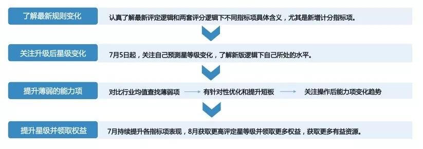 建議商家朋友全面和及時了解3.0版具體的規(guī)則變化,現(xiàn)在3.0版新邏輯已上線,商家朋友們應該重點提升薄弱項,獲取更高星級,贏得更多權(quán)益。