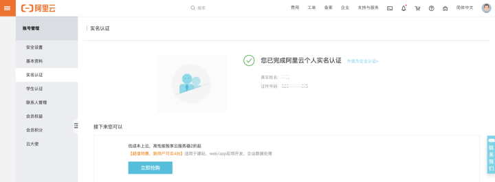 完成個人實(shí)名人認(rèn)證后,會出現(xiàn)以下頁面。