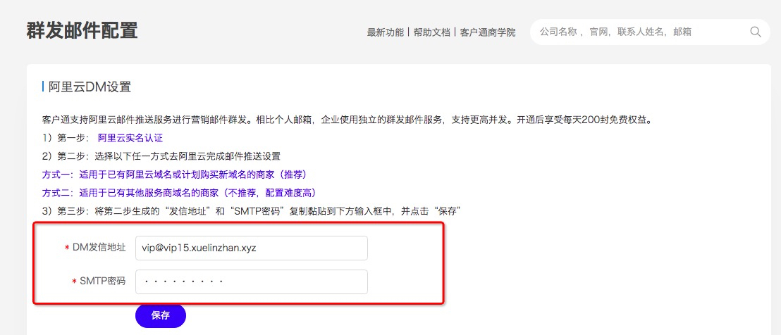 直達(dá)配置地址:https://alicrm.alibaba.com/#mail-config