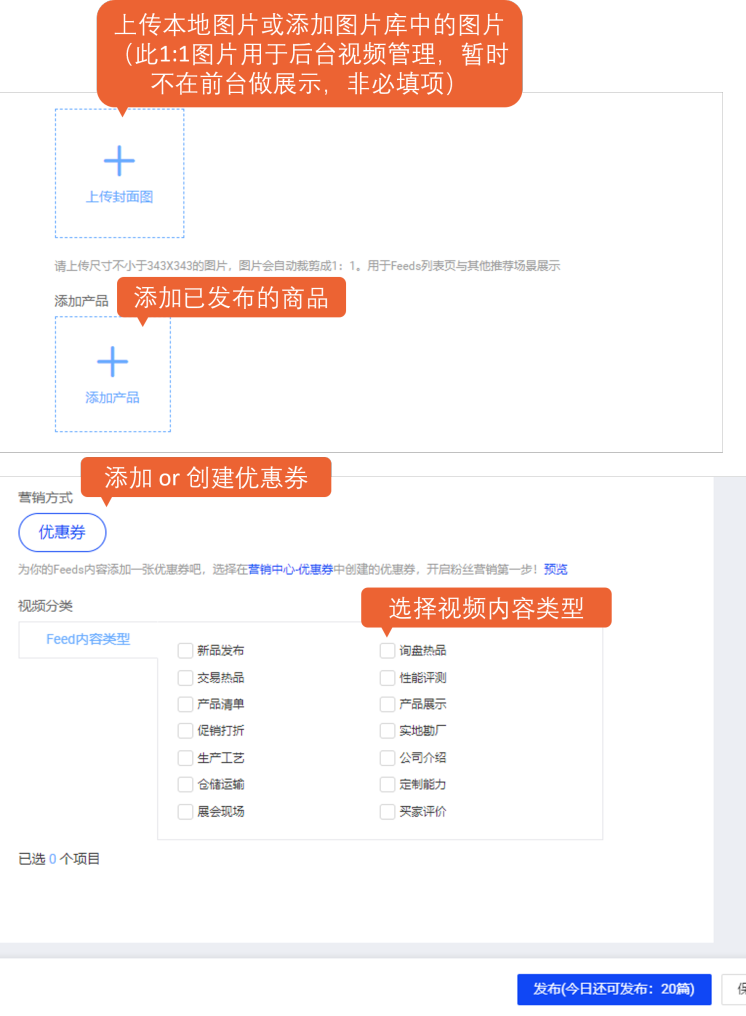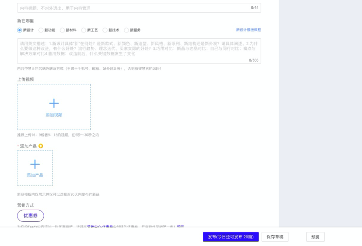 添加視頻完畢后繼續(xù)進行產(chǎn)品、優(yōu)惠券的添加:
