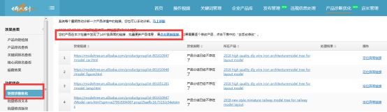 解決方法:在my-alibaba后臺(tái),一個(gè)個(gè)去點(diǎn)開(kāi)產(chǎn)品檢查是否有失效內(nèi)鏈工作量比較大,如果有倚天劍的建議用倚天劍的產(chǎn)品診斷優(yōu)化-鏈接診斷優(yōu)化,每周自動(dòng)診斷并且可以批量更新