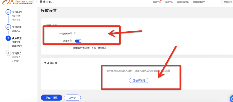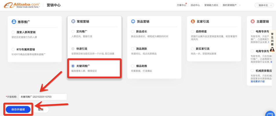7、支持新建關(guān)鍵詞計(jì)劃進(jìn)行推廣;
