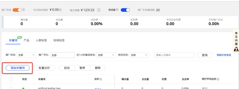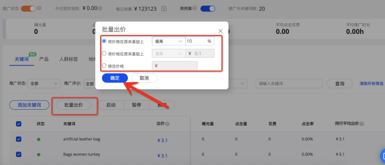 列表中關(guān)鍵詞出價(jià)調(diào)整與設(shè)置: