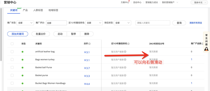 推廣狀態(tài):篩選當(dāng)前不同狀態(tài)的關(guān)鍵詞;