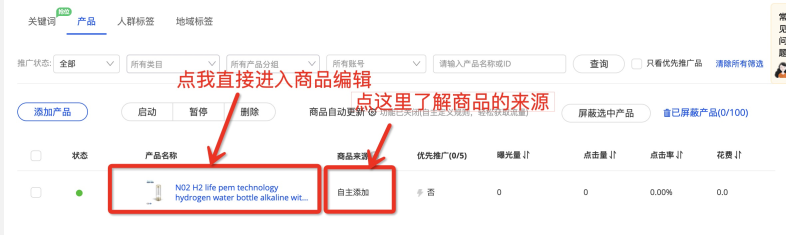 - 您的自主添加商品除非您手動(dòng)刪除,否則不會(huì)因您開啟商品自動(dòng)更新,而被踢出計(jì)劃,不被推廣;(如您自主添加的商品在屏蔽品當(dāng)中,則該產(chǎn)品還是會(huì)被推廣、產(chǎn)生花費(fèi)的哦)
