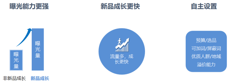提升新品競(jìng)爭(zhēng)力:首先保證新品能通過(guò)初選,因?yàn)樾缕繁旧須v史積累數(shù)據(jù)少,在預(yù)選時(shí)很容易被排在后面,但使用新品推廣,就會(huì)只和其他新品競(jìng)爭(zhēng),選出好的商品,再參與最后的排序;