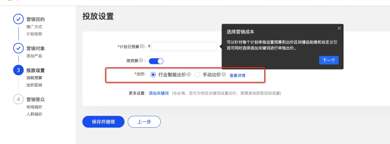您可以選擇:行業(yè)智能出價(jià),或自主設(shè)置最高出價(jià);