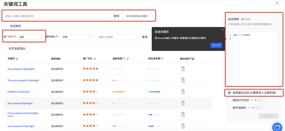 第四步:添加關(guān)鍵詞:加了精準(zhǔn)的關(guān)鍵詞,可以為你的新品推廣,做好助攻!