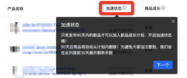注意:??自商品發(fā)布時(shí)間起,滿90天,則自動(dòng)從新品成長(zhǎng)計(jì)劃內(nèi)剔除,此時(shí)代表加速結(jié)束,產(chǎn)品將不再推廣、產(chǎn)生花費(fèi),也不會(huì)展示在計(jì)劃中;