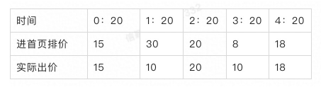 在04:20,進入前五的出價為18元,商家在此時的出價只需要達到18即可獲得該位置,則實際出價為18元;
