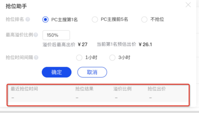 搶位助手每次搶位的底價,均為商家自主設置的關鍵詞的出價,與定向、爆品的出價區(qū)間無關;