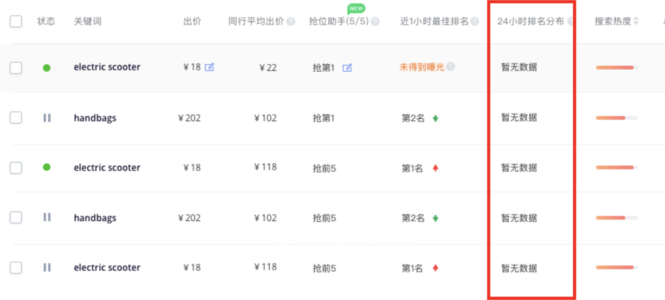 根據(jù)過去24小時排名數(shù)據(jù),來查看實際曝光位置,判斷當前出價是否有競爭力;