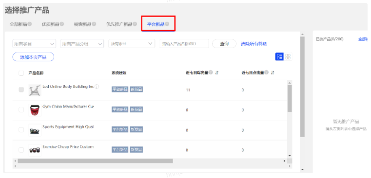 為了便于更好的篩選平臺新品加入推廣,上線了平臺新品tab,在新品成長計(jì)劃添加產(chǎn)品時(shí)可以選擇平臺新品tab后,添加產(chǎn)品