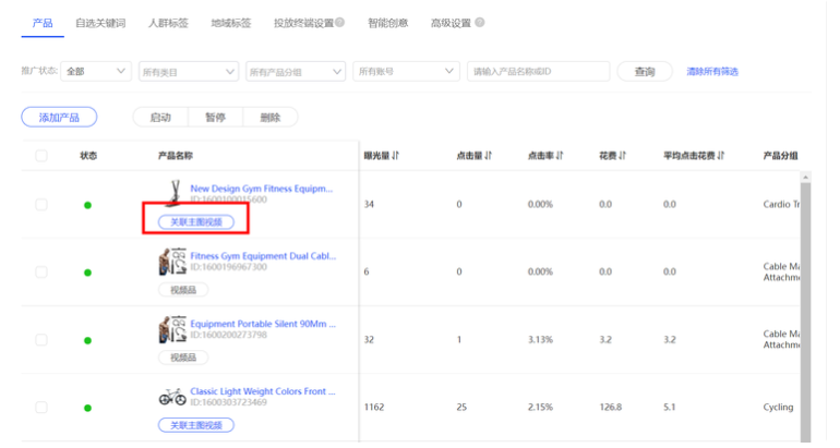 第二步:在產(chǎn)品里點(diǎn)擊關(guān)聯(lián)主圖視頻