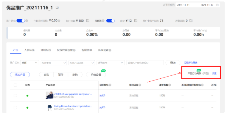 店鋪內(nèi)的實(shí)力優(yōu)品和爆品,建議加入此計(jì)劃中,特別是排名靠后的產(chǎn)品。