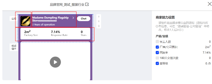 基礎(chǔ)設(shè)置完成后,開(kāi)始正式制作官網(wǎng),首先制作店招;店招由企業(yè)LOGO,公司名,公司信息(產(chǎn)能./業(yè)績(jī))3部分組成。其中公司信息(產(chǎn)能/業(yè)績(jī))有5個(gè)字段組成,在想要推廣的字段前打勾即可,最多勾選3個(gè),最少勾選1個(gè),推薦勾選3個(gè),這樣頁(yè)面相對(duì)比較美觀。