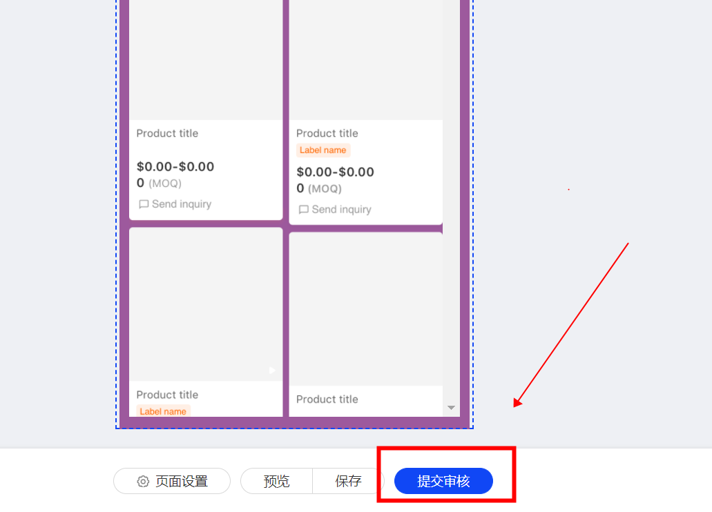 1.頁(yè)面制作完成,點(diǎn)擊最下方的“提交審核”按鈕,一般3~5天會(huì)審核完成,審核通過(guò)后即可綁定投放