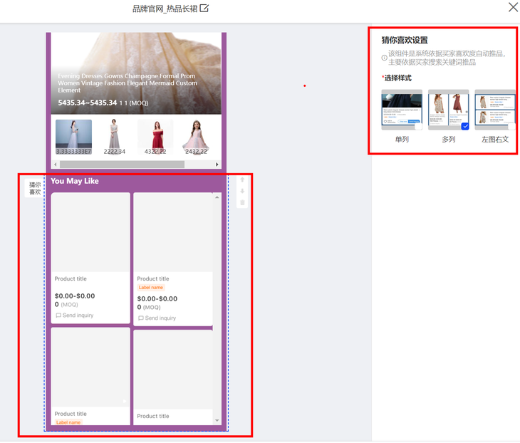 猜你喜歡組件是頁(yè)面最下方的商品展示組件,不可移動(dòng)到上方。