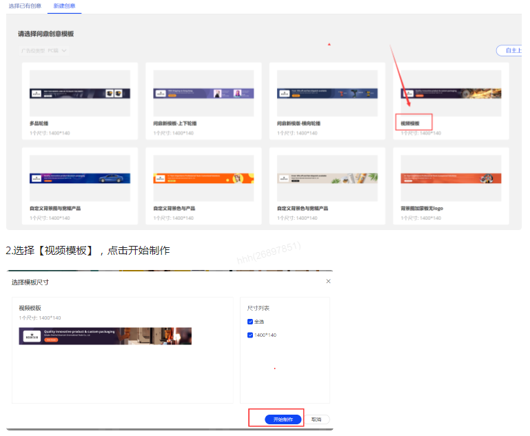 1.進(jìn)入問鼎后臺—創(chuàng)意管理—新增創(chuàng)意—找到【視頻模板】