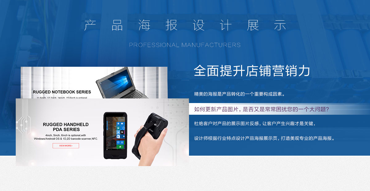 設(shè)計(jì)師根據(jù)行業(yè)特點(diǎn)設(shè)計(jì)海報(bào)等展示內(nèi)容,體現(xiàn)賣家的專業(yè)性,提升訪客的體驗(yàn)感