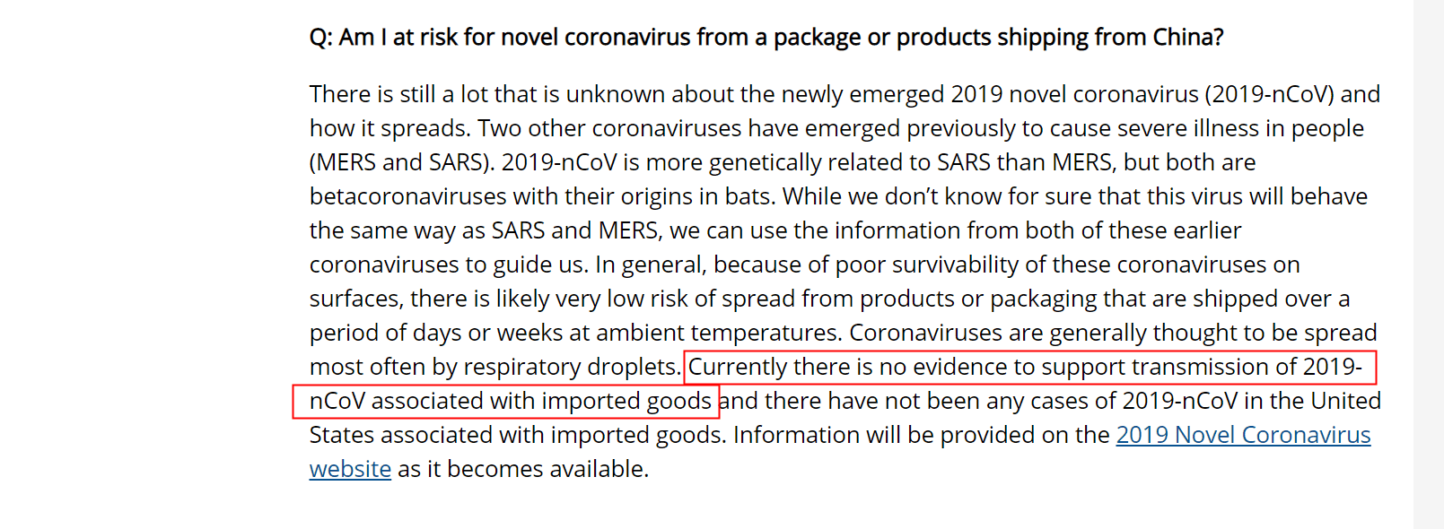 情況3:買家擔(dān)心從中國運(yùn)出的包裹或貨品,會(huì)攜帶冠狀肺炎病毒。